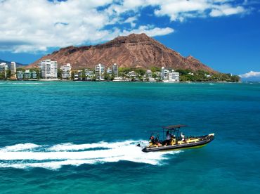 This is your adventure, and with our private boat tour, you and your group are fully in control of the experience. Cruise the breathtaking Waikiki coastline aboard our 28ft inflatable adventure boat—the same style used by the U.S. Coast Guard for its stability, speed, and reliability. The straddle seats add to the thrill, giving you that fun, roller-coaster-on-water feel as we glide, carve, and cruise along the shoreline.