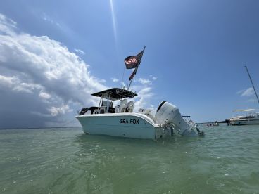 Experience the ultimate boating adventure with Captain Adams Boat Excursions aboard a fully restored 2004 Sea Fox 257 Center Console (restored in 2025) based in beautiful Palm Harbor. Perfect for up to six guests, this sleek and powerful vessel is powered by a 300 HP Suzuki outboard engine, reaching speeds of up to 55 knots—ideal for thrilling rides or relaxing cruises.