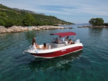 Private Speedboat Island Tour is a 2023 Atlantic Marine 670 Walkaround based out of Dubrovnik. It can take up to eight guests. The boat is powered by one 150 HP gasoline outboard Honda engine, offering a maximum cruising speed of 28 knots.