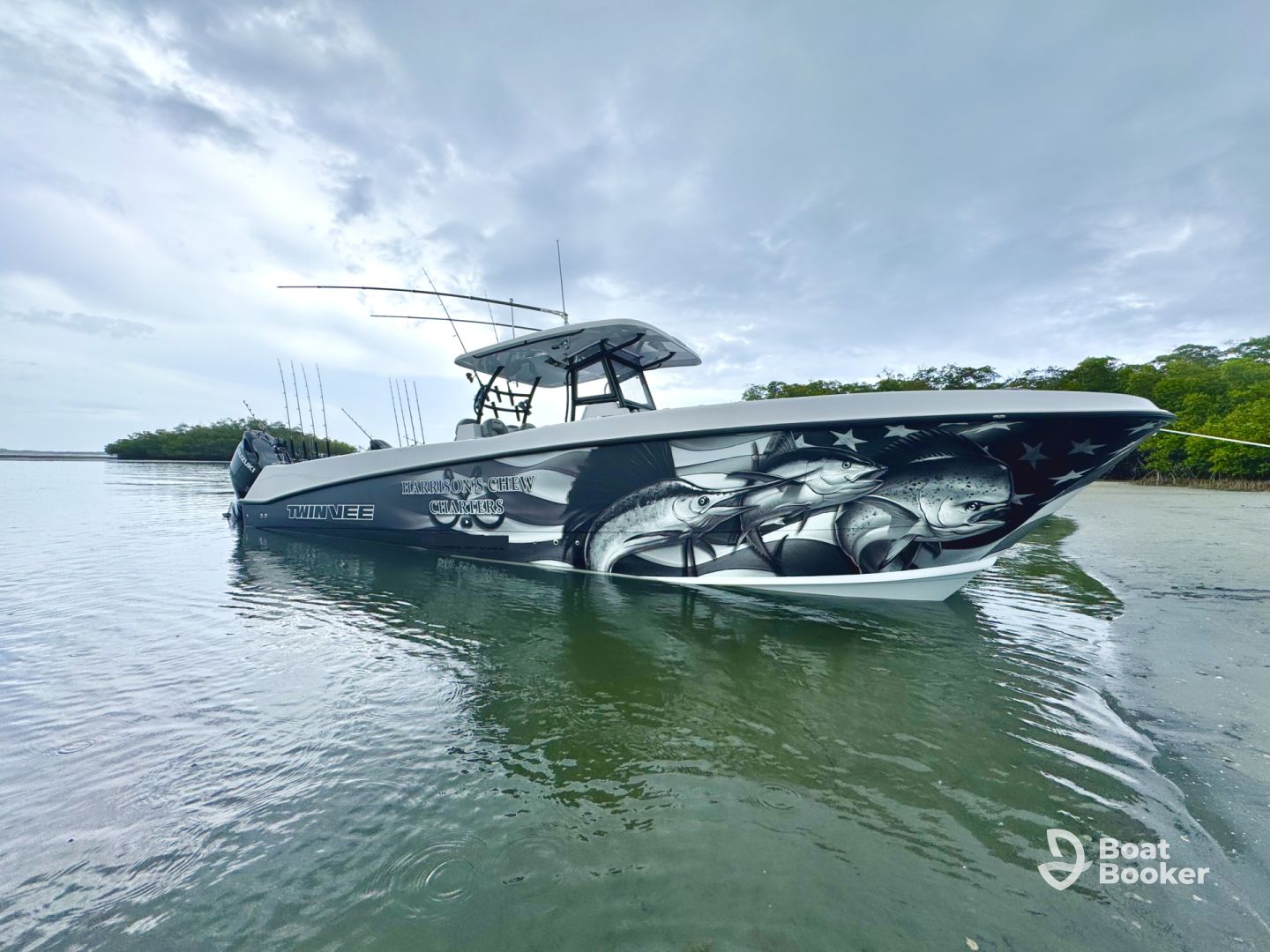 Harrison’s Chew Charters invites you to experience the ultimate adventure aboard a brand-new 2026 Twin Vee 340 GFX Catamaran, departing from beautiful Jensen Beach, FL. Designed for both comfort and performance, this spacious catamaran accommodates up to 6 guests and is powered by twin 350 HP Suzuki engines, reaching thrilling speeds of up to 55 knots. Whether you’re cruising the coastline, island hopping, spotting dolphins, or enjoying a laid-back booze cruise, every moment promises excitement and relaxation on the water.
