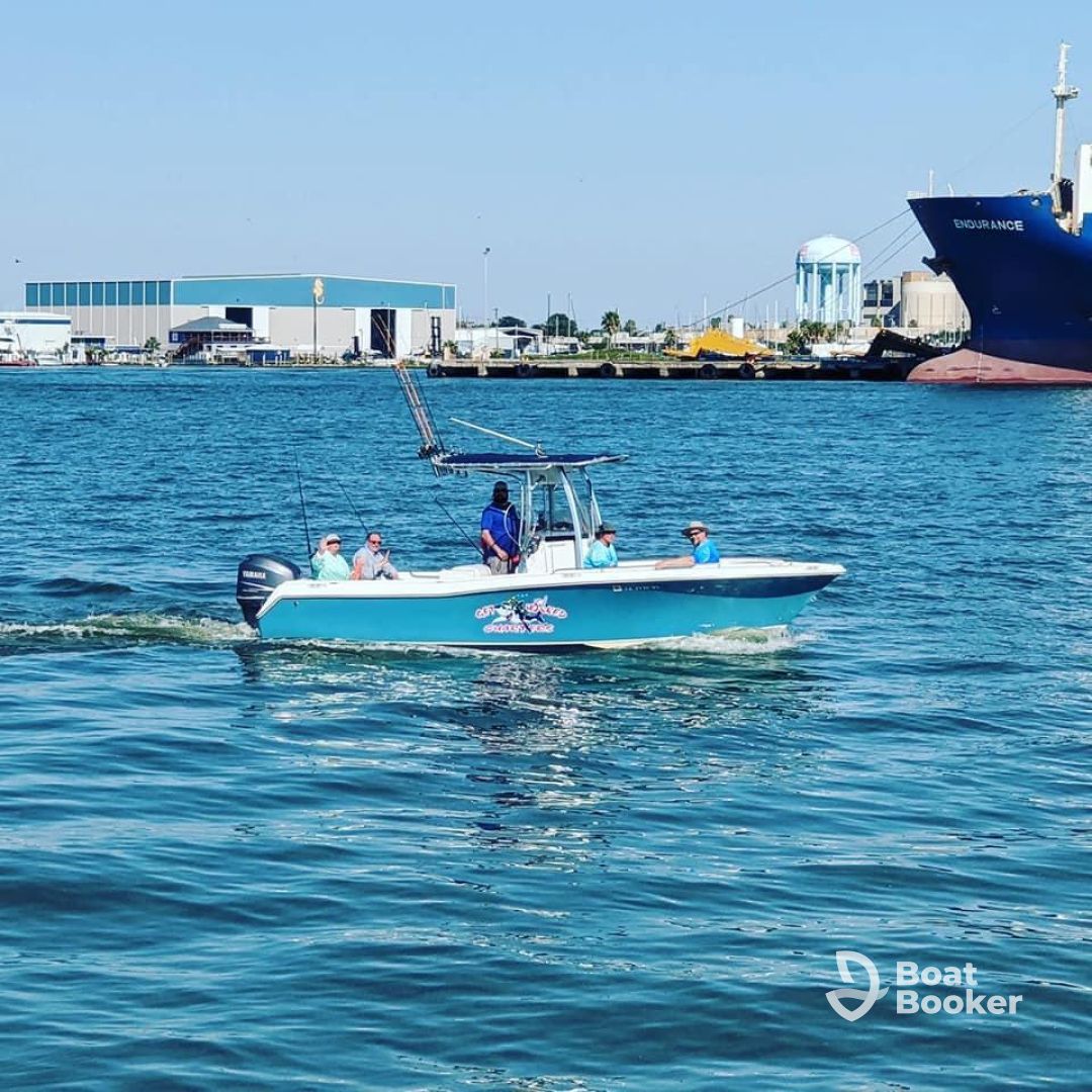 Get Hooked Charters Galveston is a 2008 Sea Hunt Triton Center console based out of Galveston's west bay in Hitchcock. It can take up to six guests. The boat is powered by one 250 HP gasoline outboard Suzuki engine, offering a maximum cruising speed of 40 knots. The vessel comes equipped with baitwell, fishfinder and rod holders.