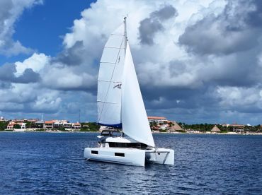 Blue Iris is a 2020 Lagoon 400 Sailing Catamaran based out of Puerto Aventuras. It can take up to twenty guests. The boat is powered by two 49 HP diesel inboard Yanmar engines, offering a maximum cruising speed of 8 knots. The vessel comes equipped with air-conditioning, audio system, grill, ice box, inside speakers, outside speakers, refrigerator, and rod holders.