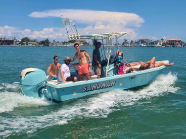 Sandman Charters is a locally owned and operated private charter company offering unforgettable days on the water in beautiful St. Petersburg. Your adventure takes place aboard a fully restored 2008 Laguna B 210 SC Bay Boat, powered by a reliable 150 HP Mercury engine and perfectly suited for up to six guests.