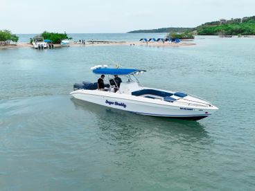 Set sail aboard Sugar Daddy Boat, a beautifully restored 2018 Eduardoño Bravo Center Console (refurbished in 2025) in Cartagena de Indias. Accommodating up to twelve guests, this sleek vessel is powered by twin 200 HP Yamaha outboard engines, reaching speeds of up to 50 knots, perfect for exploring the sparkling Caribbean waters.