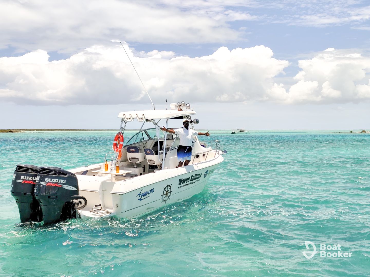Experience the ultimate day on the water with Waves Splitter Charters, a 1996 Pro-line 2950 Express Jet based in Leeward Settlement. Perfect for up to eight guests, this sleek vessel is powered by twin 300 HP Suzuki outboard engines, cruising at speeds up to 25 knots for fast, thrilling adventures.