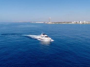 Yachting icon is a 2009 Azimut 2009 Motor yacht based out of Ayia Napa. It can take up to twelve guests. The boat is powered by two 1150 HP diesel inboard MTU engines, offering a maximum cruising speed of 36 knots. The vessel comes equipped with airconditioning, audio system, baitwell, fishfinder, grill, ice box, inside speakers, outside speakers, refrigerator, rod holders and WiFi.