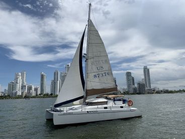 Step aboard Armonía, a beautifully restored 1994 Fountaine Pajot Tobago catamaran, and experience the magic of the Caribbean from the waters of Cartagena de Indias. Designed for comfort and stability, this spacious sailing catamaran welcomes up to 16 guests and is powered by twin 35 HP Yanmar diesel engines, cruising smoothly at up to 8 knots. Onboard amenities include air conditioning and an ice box to keep refreshments chilled as you relax and enjoy the sea breeze.