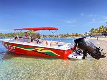 Experience the beauty of Gros Islet aboard Captain Dell Boat Charters, a fully restored 2015 Bowen Speed Boat Center Console (2020). Perfect for up to ten guests, this sleek vessel is powered by twin 300 HP Mercury outboard engines, reaching speeds of 30 knots for fast and thrilling rides.
