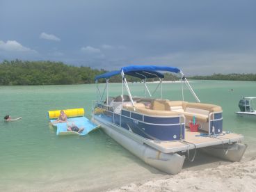 Experience the ultimate Florida boating adventure with Sonny's Boat Tours and Charters, departing from Englewood/Manasota Key, FL. Our spacious pontoon comfortably accommodates up to six guests and comes fully equipped with a Bluetooth audio system, fishfinder with rod holders, a cooler stocked with ice and water, and a protective bimini top for shade.