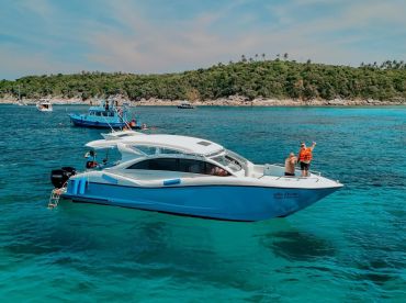 Step aboard PBC Travel, a sleek 2025 GPF Sunnav speed boat outboard based in beautiful Chalong Marina, and get ready for an unforgettable day on the water. Designed for fun, comfort, and adventure, this spacious vessel accommodates up to 20 guests, making it perfect for groups, celebrations, and island-hopping escapes.