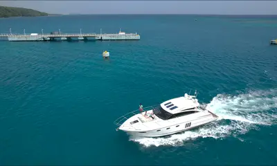 Set sail in style with Island Dog Watersports Ltd, a 2011 Princess V52 Express Cruiser based in Ocho Rios, perfect for up to twelve guests. Powered by twin 526 HP Caterpillar diesel engines, she cruises comfortably at 14 knots, offering a smooth and relaxing experience on the Caribbean waters.