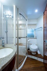 You will find all the necessary safety features onboard, the boat features anchor, autopilot, bow thruster, chart plotter, depth finder, GPS, life jackets, radar, sonar, VHF radio and wheel steering are included.