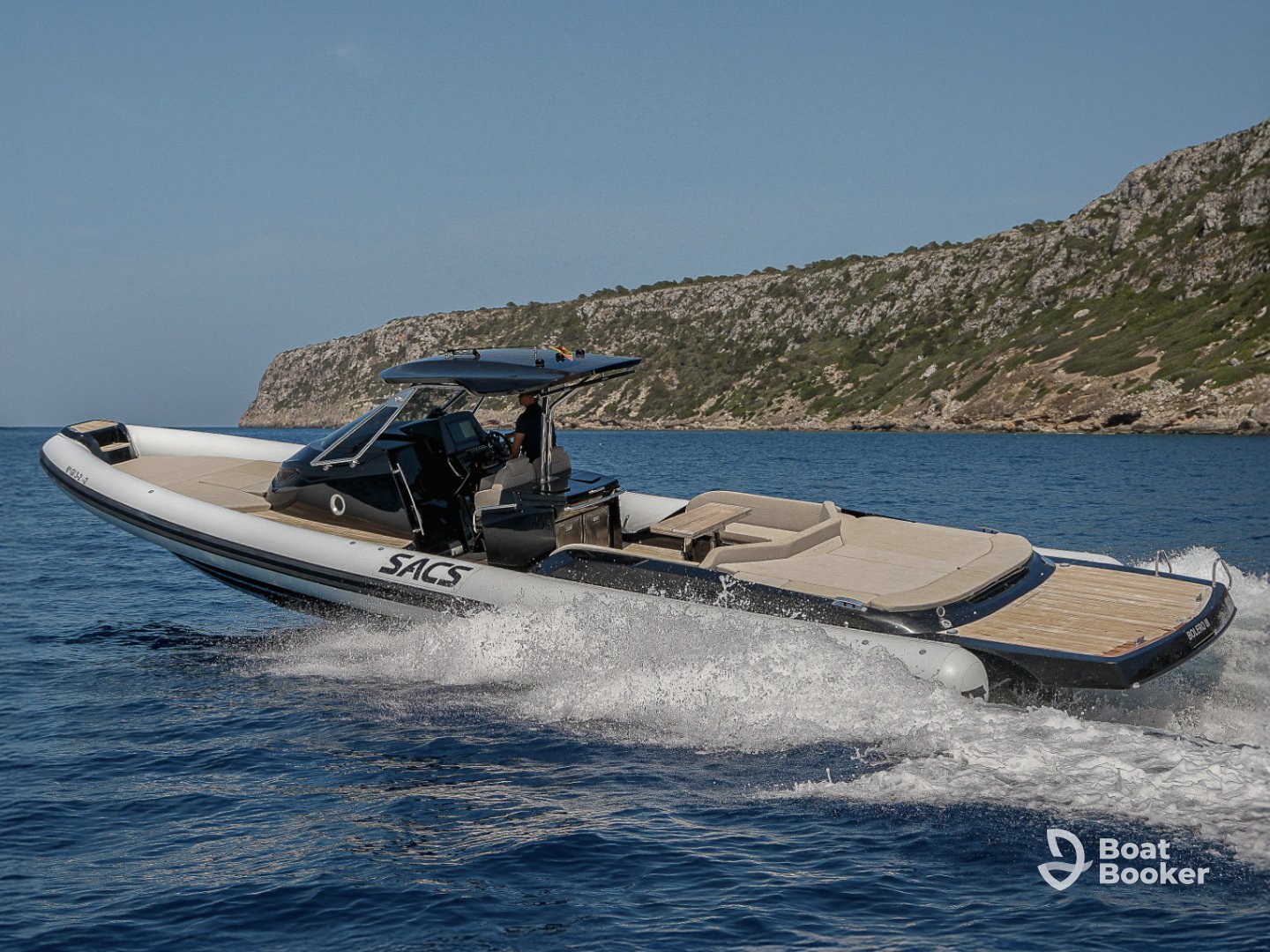 Sacs 44ft Motor yacht, based out of Ibiza. It can take up to 12 guests.The vessel comes equipped with audio system, speakers and ice cooler.