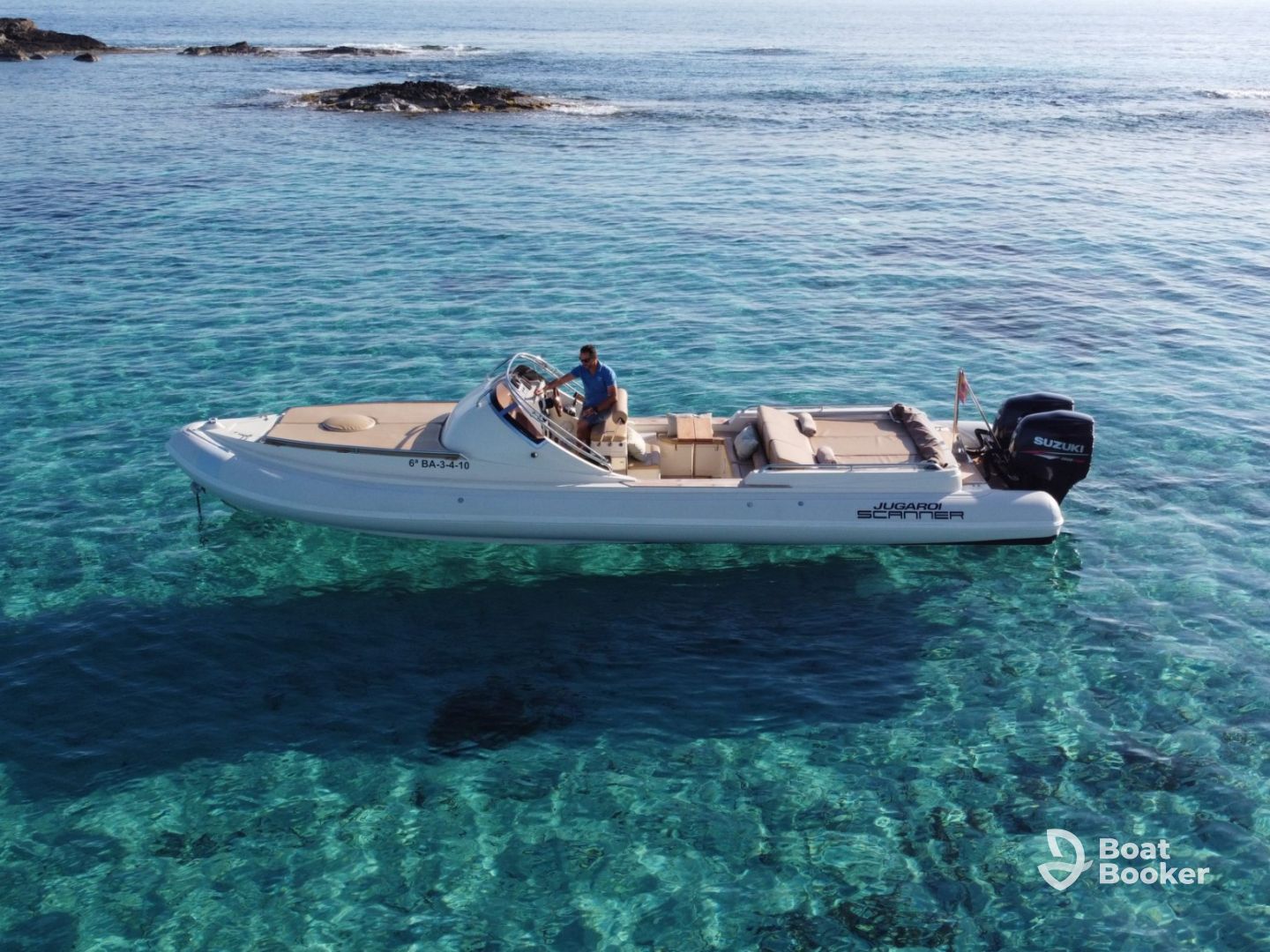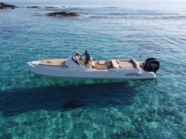 Enjoy Ibiza Charter invites you to experience Ibiza from the water aboard a sleek and powerful Scanner Envy 970D, departing from the prestigious Marina Botafoc in Ibiza. Designed for both comfort and performance, this stylish boat accommodates up to 10 guests and is powered by twin 300 HP Suzuki brand new outboards, cruising smoothly at speeds of up to 35 knots—perfect for exploring hidden coves, iconic coastlines, and crystal-clear swimming spots.