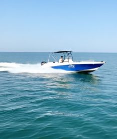 Aqua Sports is a 2025 Commercial Marine Craft Aqua1 Other based out of Dubai. It can take up to six guests. The boat is powered by one 250 HP gasoline outboard YAMAHA engine, offering a maximum cruising speed of 30 knots. The vessel comes equipped with audio system, fishfinder, ice box and inside speakers.