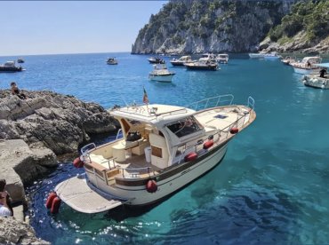 The Fratelli Aprea 32' HT motor boat represents a perfect balance of elegance, performance, and comfort. Designed to accommodate up to 12 passengers, this boat is ideal for exploring the coast in complete relaxation and safety. With an overall length of 10.50 metres and a maximum beam of 3.80 metres, it offers generous on-board spaces, perfect for guaranteeing comfort and conviviality while sailing.