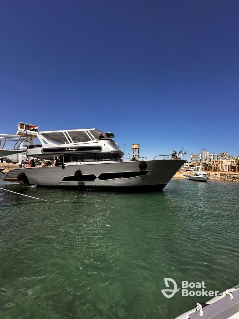 Experience the beauty of Hurghada aboard Prima Hurghada, a 2024 Prima Diving Motor Yacht designed for comfort and adventure. Hosting up to ten guests, this sleek vessel is powered by a 240 HP Cummins diesel engine, cruising smoothly at 8 knots.