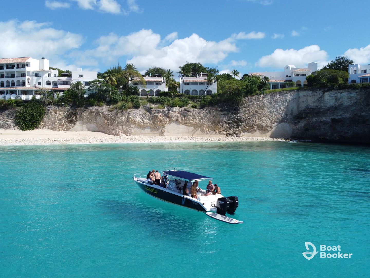 Suneeta Sxm – Private Boat Charter is your gateway to exploring the stunning waters of St. Martin aboard a 2018 Jefferson Yachts Marlago Center Console. Perfect for up to 10 guests, this sleek vessel is powered by twin 300 HP Suzuki outboards, cruising comfortably at up to 45 knots. Onboard, enjoy an audio system, inside speakers, ice box, bimini, bow sundeck, one cabin, and a full bathroom for your comfort.