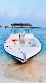 JUDA SEA TOURS ISLAND CRUISES is a 2014 Gulf Gulf craft Super Deluxe Cuddy cabin based out of Abu Dhabi. It can take up to eight guests. The boat is powered by two 225 HP gasoline outboard Suzuki engines, offering a maximum cruising speed of 40 knots. The vessel comes equipped with Bluetooth Audio system and with full beach ⛱️ set up for island hopping.