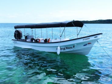 Experience the beauty of Bocas Del Toro aboard Kawi Voyage - Galaxy 1, a 2018 Galaxy 1 Panga, 25ft of comfort and adventure. Perfect for groups of up to twelve guests, this boat combines reliability with style. Powered by a 20 HP outboard engine, it cruises at a relaxed 8 knots, offering a smooth and safe ride for families, friends, or diving enthusiasts.