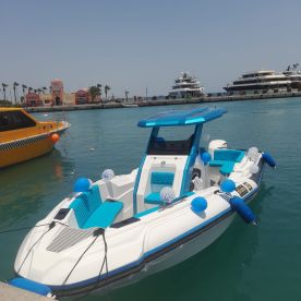 Set sail from Hurghada aboard the Bluebird Hurghada, a sleek 2023 custom-built RIB speed boat (restored in 2026) perfect for up to eight guests. Powered by a reliable 200 HP Yamaha outboard engine, it reaches cruising speeds of up to 35 knots, making it ideal for island hopping, snorkeling, or simply enjoying the open sea.