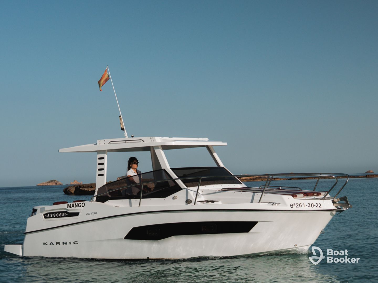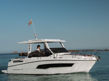 Experience the beauty of Ibiza from the water aboard this sleek 2019 Karnic 700 HT, operated by Fantastic Charter Ibiza and departing from Sant Antoni de Portmany. Perfect for up to seven guests, this stylish motor yacht is powered by a reliable 200 HP Yamaha engine, cruising comfortably at speeds up to 25 knots—ideal for exploring hidden coves, turquoise bays, and iconic sunset views.