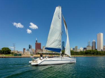 Set sail in style with 1st Class Charters Chicago aboard the 2017 Catalina Gemini 380, a sleek and comfortable sailing yacht based in Chicago. Perfect for up to seven guests, this vessel blends performance with relaxation, powered by twin 15 HP Yanmar diesel engines for a smooth cruise of up to 8 knots.