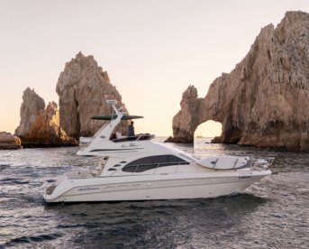 Cabo By Sea is a 2019 Sea Ray 45ft Motor Yacht based out of Cabo San Lucas. It can take up to ten guests. The boat is powered by two 50 HP diesel inboard Unknown engines, offering a maximum cruising speed of 20 knots. The vessel comes equipped with audio system, ice box, inside speakers, outside speakers, refrigerator and rod holders.