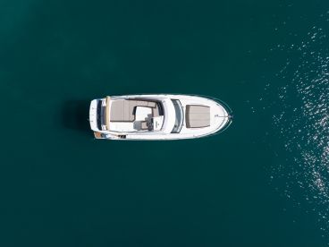 Powered by twin Cummins diesel inboard engines 380 HP, the Jeanneau Prestige 400 Fly delivers a smooth, stable, and comfortable cruise, reaching speeds of up to 31 knots.