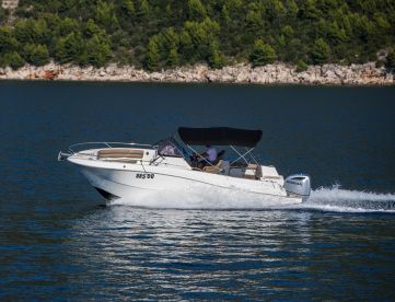 Experience the ultimate Adriatic adventure aboard the 2018 Atlantic Marine Open 750, operated by Blue Mile Dubrovnik. Perfect for up to eight guests, this sleek center console boat is powered by a 250 HP Honda outboard engine, reaching cruising speeds of up to 30 knots, ideal for exploring Dubrovnik’s stunning coastline and nearby islands.