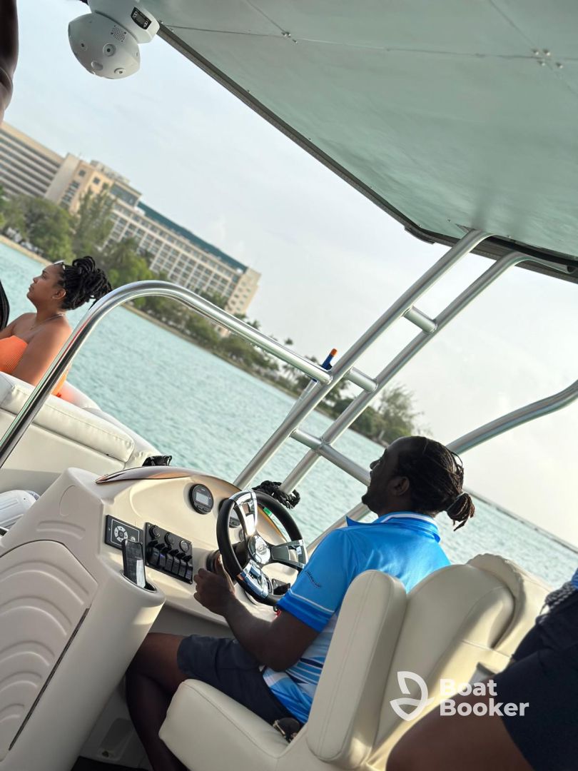 Relax to your favorite music through the outside speakers, stay refreshed with the onboard refrigerator, and share the moment instantly thanks to WiFi onboard. Whether you're exploring crystal-clear waters or soaking up the Caribbean sun, this pontoon offers the perfect setting for an unforgettable day.