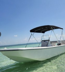 Sandbar Somewhere Charter is a 2023 Skiff Sundance Skiff based out of Summerland Key. It can take up to four guests. The boat is powered by one 140 HP gasoline outboard Suzuki engine, offering a maximum cruising speed of 30 knots.