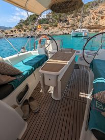 TEROsailboat is a 2008 Beneteau Océanis 40 Sailing (restored in 2023), based out of Illes Balears. It can take up to eight guests. The boat is powered by one 40 HP diesel inboard Yanmar engine, offering a maximum cruising speed of 7 knots. The vessel comes equipped with audio system, inside speakers, outside speakers and refrigerator.