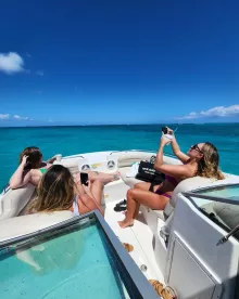 Once onboard, you'll have facilities to make your trip as comfortable as possible: aft sundeck, bathing platform, bimini, bow sundeck, one cabin and one head. Optional addons include drinks, snacks and snorkeling equipment. Onboard policies are: alcohol allowed, children allowed, glass bottles allowed onboard, red wine allowed onboard, smoking allowed and swimming allowed.