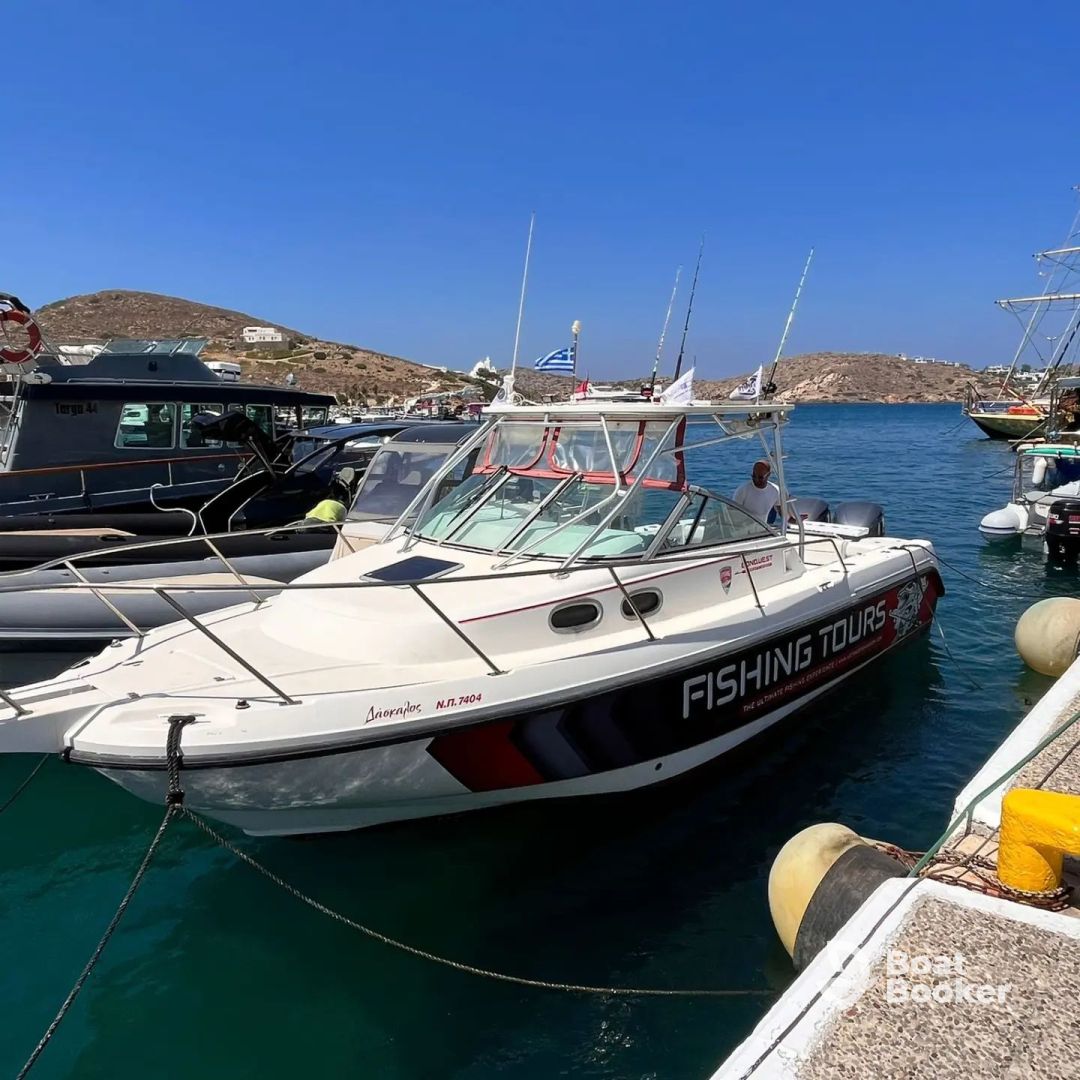 Sea and Freedom is a 2001 Boston Whaler Conquest Pilothouse based in Ios port, offering an exclusive private experience for up to 6 guests.