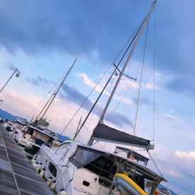 a 2016 Leopard 44 sailing Catamaran based out of Mai Khao. It can take up to twenty guests. The boat is powered by two 30 HP diesel inboard Yanmar engines, offering a maximum cruising speed of 8 knots. The vessel comes equipped with airconditioning, audio system, fishfinder, grill, ice box, inside speakers, outside speakers, refrigerator and rod holders.