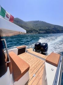 Sorrento Luxury Charter is a 2023 Axopar 37 Other based out of Sorrento. It can take up to eight guests. The boat is powered by two 350 HP diesel outboard Mercuri engines, offering a maximum cruising speed of 48 knots. The vessel comes equipped with audio system, ice box and inside speakers.