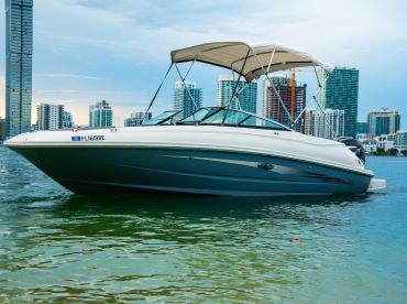 BN Boating Boat Tours is a 2016 Sea Ray Sundeck 240 Deck boat based out of Fort Lauderdale. It can take up to eight guests. The boat is powered by one 300 HP gasoline outboard Mercury Verado engine, offering a maximum cruising speed of 50 knots. The vessel comes equipped with audio system, ice box and outside speakers.