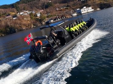 Bergen Fjord Safari presents the 2025 Gemini Wave Rider 1060 rigid-inflatable boat based out of Bergen. It can take up to twelve guests. The boat is powered by two 400 HP outboard Mercury engines, offering a maximum cruising speed of 60 knots.