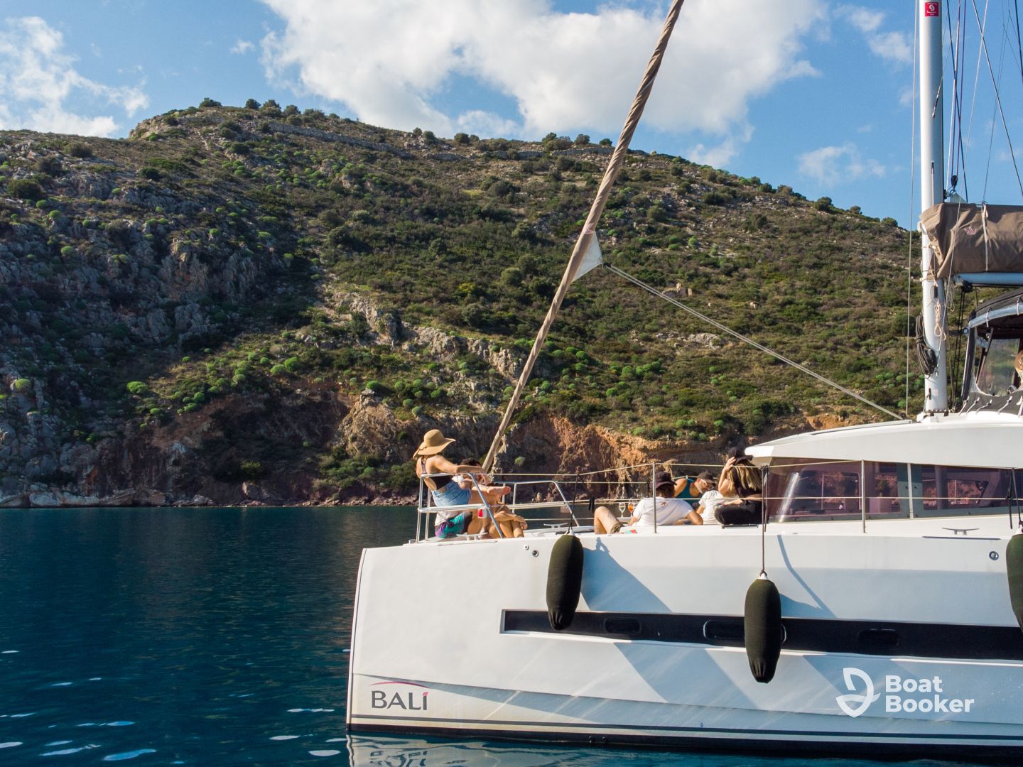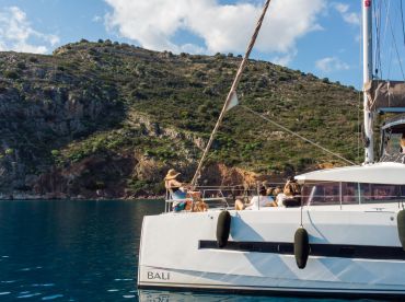 Discover Nafplio from the sea aboard “Calypso”, a spacious Bali 4.1 catamaran designed for comfort, relaxation, and unforgettable moments.