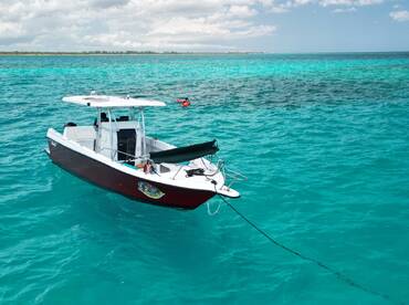 Música Boat and Snorkeling Tours is a 2014 Walkaround based out of Puerto Morelos. It can take up to five guests. The boat is powered by one 115 HP gasoline outboard Mercury engine, offering a maximum cruising speed of 12 knots. The vessel comes equipped with audio system, fishfinder, ice box, outside speakers and rod holders.