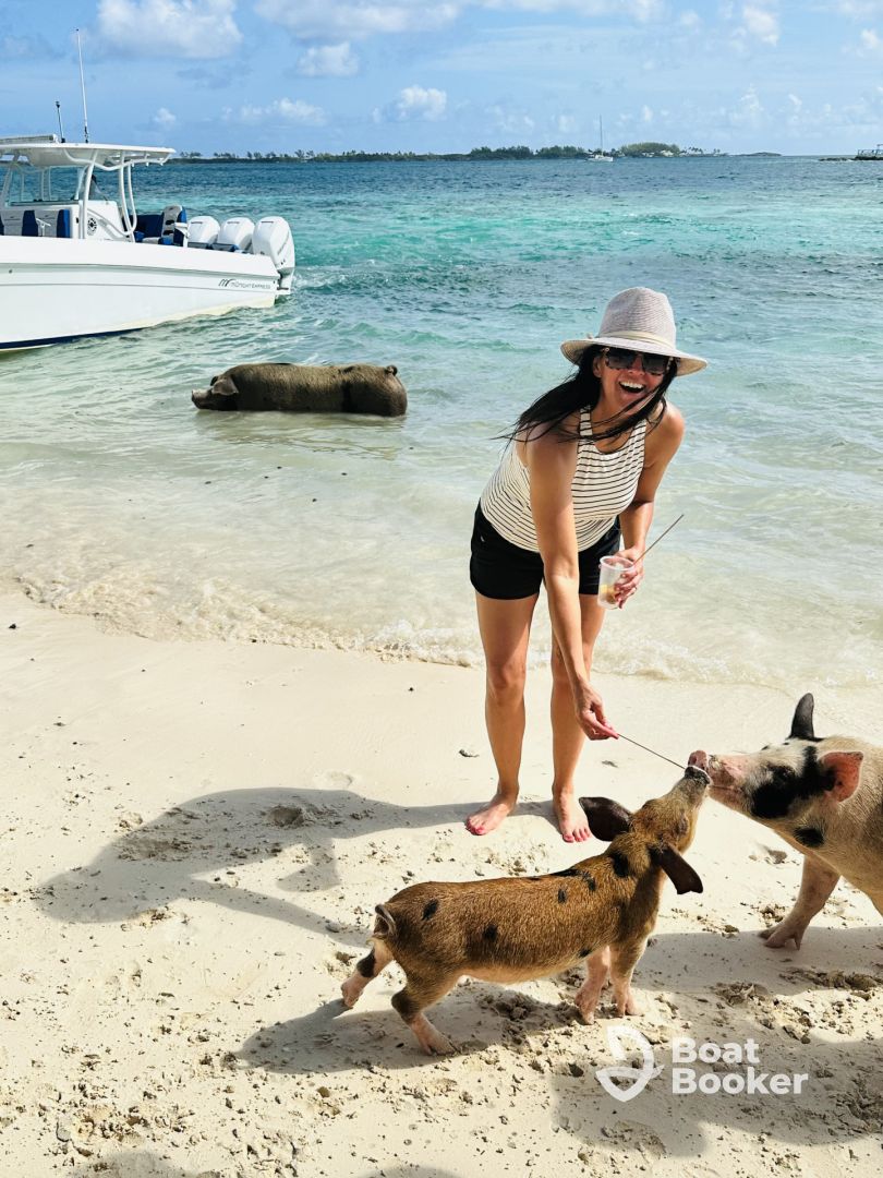Captain Braxton Graham is an experienced skipper who knows Nassau's waters like the back of his hand. At the helm of his 24’ Cobalt Deck boat, he specializes in luxury cruises and the unforgettable experience of swimming with the famous pigs. With Captain Braxton, you're guaranteed a smooth and personalized journey filled with island charm and adventure.