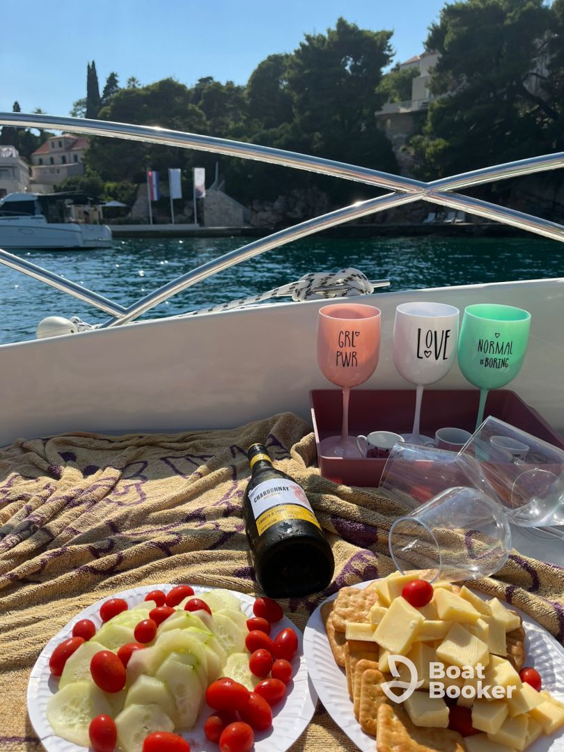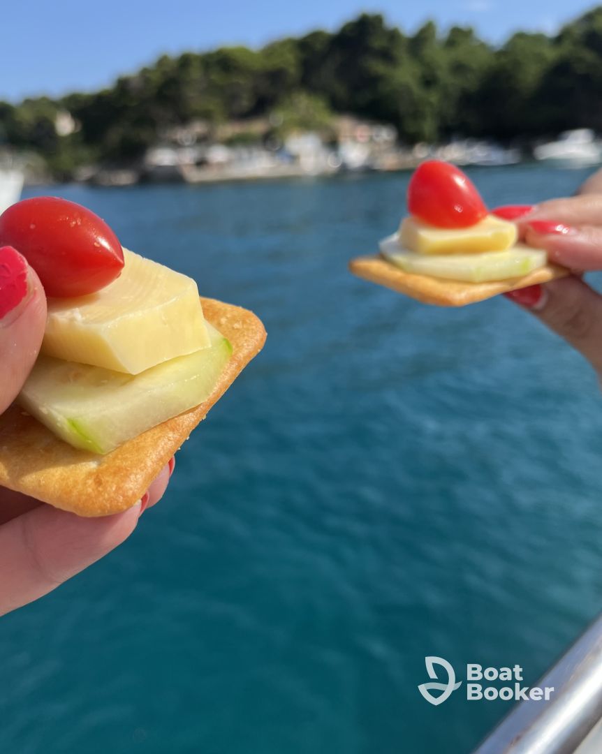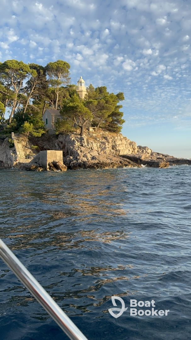 - My name is Dijana. I have been operating boats professionally since 2024, though my true experience spans more than 15 years. Sailing is a natural part of my life – living by the sea, I’ve spent nearly every summer day on the water. For over a decade, I offered complimentary boat trips to guests staying in our family accommodation – often even for short stays – simply out of love for the sea and the joy of sharing the beauty of our coastal surroundings. That long-standing experience, combined with strong safety awareness, deep local knowledge, and genuine care for people, has shaped me into a captain who truly understands both the sea and her guests. This year, my son Dominik officially joined me. He’s been around boats since early childhood, and although young, he brings a wealth of experience from years of sailing and learning by my side. In the environment I come from, female skippers are still a rare sight – which makes me proud to bring a different kind of presence to the world of charters: intuitive, calm, and deeply connected to nature and people.