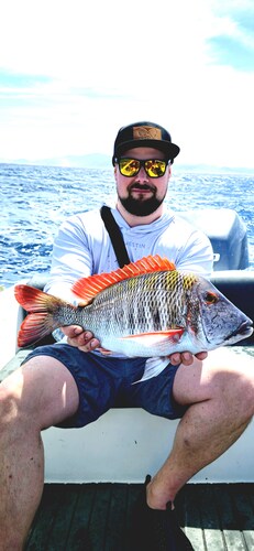 The first catch of the day was a beautiful mahi-mahi, flashing bright greens and blues as we pulled it in. That moment set the tone for the rest of the trip โ pure excitement and great vibes all around.