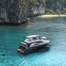 - After its first successful concept, HYPE comes back with a big, stylish yacht featuring comfortable sun lounger and three private cabins. Our guests can relish a selection of different gourmet cuisine according to their taste, as As well as a bar with an extensive menu of fine champagnes, spirits, and cocktails. Our Yacht is fitted and designed for your comfort; our resident DJ will accompany your day from an atmosphere of lounge music to club mixes. Far from the hustle and bustle of the island, our cruise oers guest a breathtaking day on the crystal-clear waters all around Phuket.