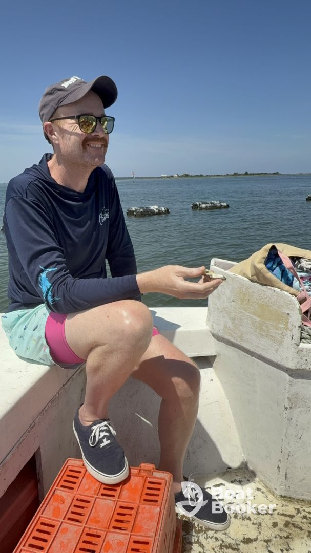 The weather was perfect, and both Russell and Captain Bobby were friendly, professional, and extremely knowledgeable. On the way back, Captain Bobby even shucked oysters for us right on the boat, and we got to enjoy the freshest oysters weโve ever tastedโabsolutely delicious!