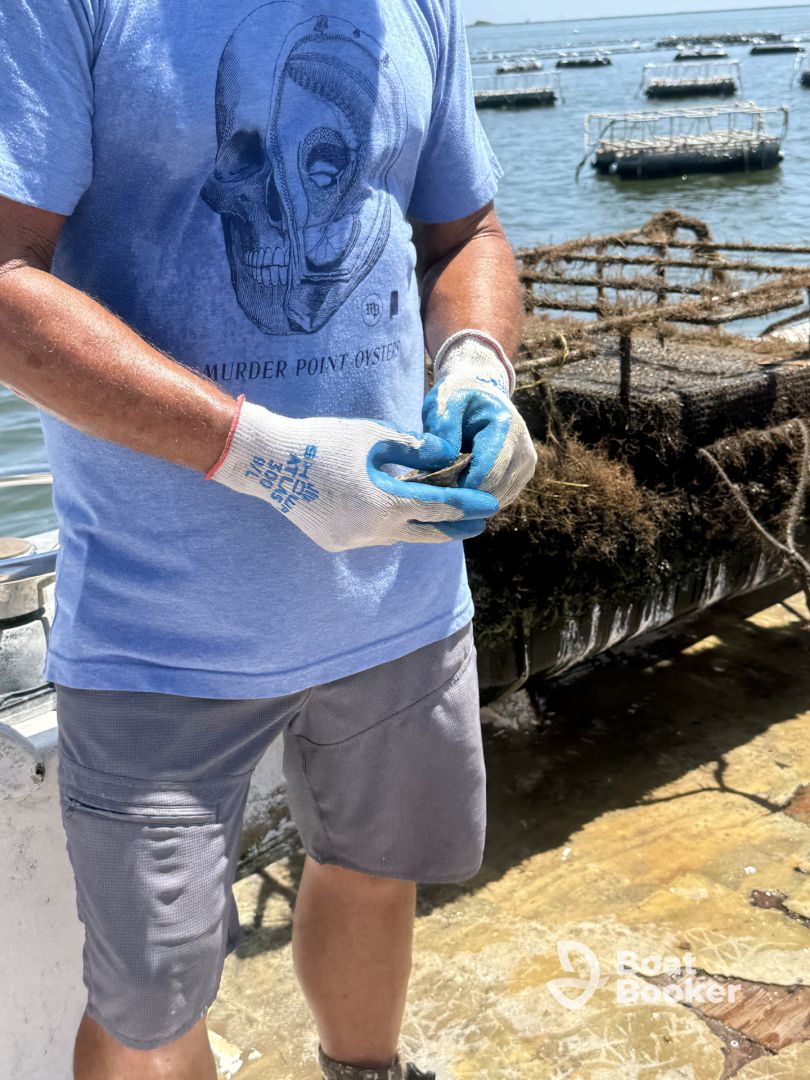 We booked an oyster tour with Russell and Captain Bobby for our anniversary, and it turned out to be one of the most memorable parts of our trip! They took us out to their oyster farm, where we learned all about how oysters are grown, harvested, and sold. It was both educational and incredibly fun.