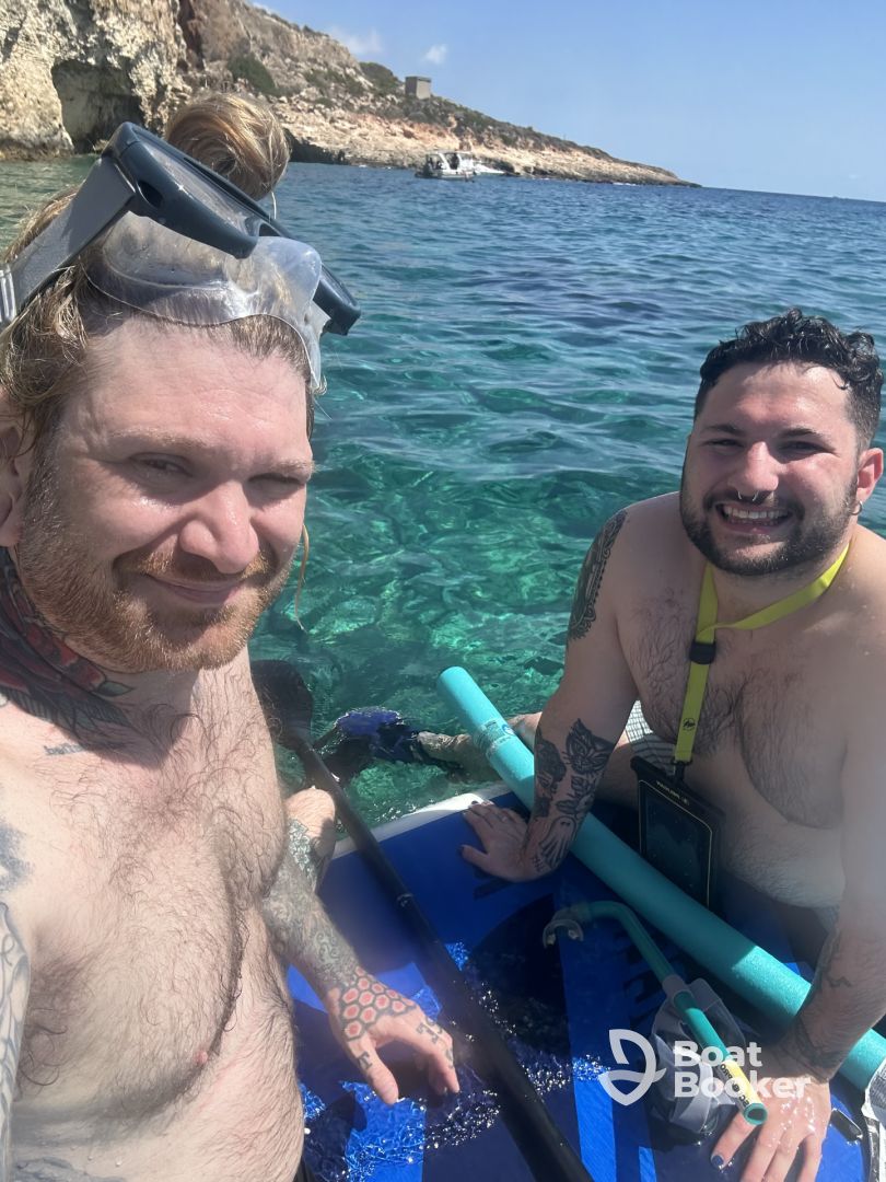 We were a group of 10 visiting Malta for tourism and sailed to Comino, where we enjoyed paddle boarding, snacks, and refreshments on board. The boat itself was excellent and spacious, with a comfortable cabin, kitchen, and two bathrooms.